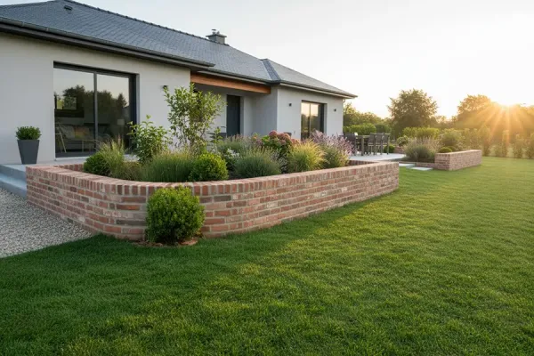 Le muret en briques constitue une autre solution intéressante. Il apporte une touche chaleureuse et peut s’intégrer facilement à l’architecture d’une maison. Les briques permettent aussi de réaliser des structures régulières et élégantes, idéales pour délimiter des espaces ou accompagner une terrasse.